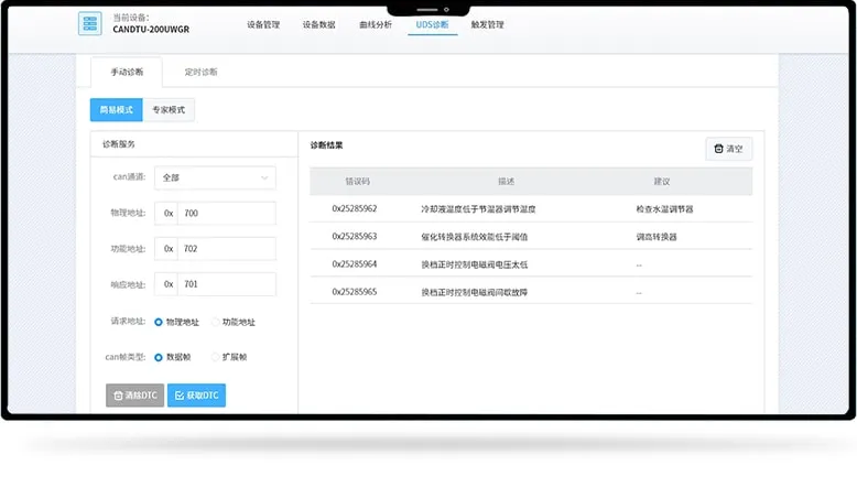 在线获取汽车的DTC数据,诊断汽车故障位置和原因。