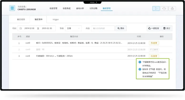 支持条件触发告警,且可下载前后五分钟的数据进行故障分析。