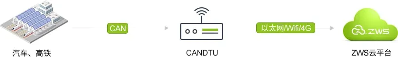 针对汽车电子、车联网等场景的设备,通过CAN-bus数据记录仪CANDTU-200记录CAN数据,再通过4G连接到云端,实现车载数据的数据分析功能。