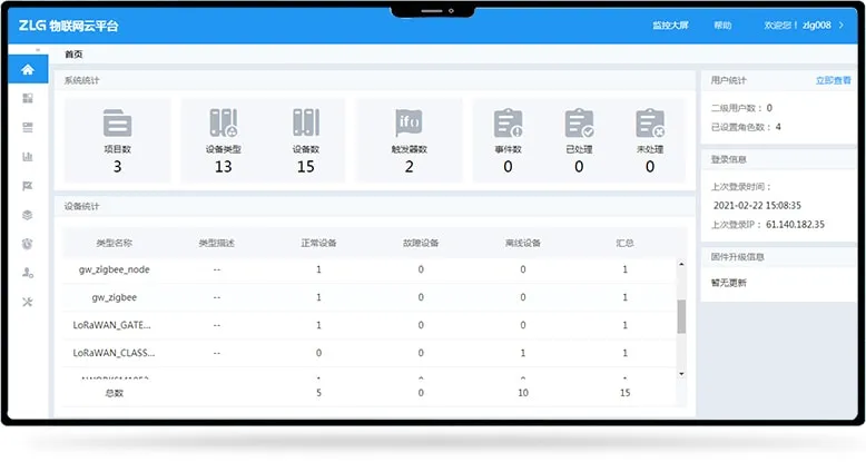 将设备接入云端后,即可在ZWS云平台-控制台,对行业设备进行实时监测和管控。