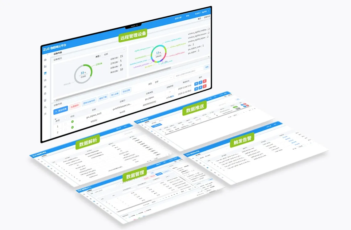 - 远程管理:将设备接入ZWS云平台,统一管理设备,可远程查看设备状态、配置设备等。